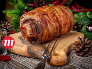 Для приготовления поркетты вам понадобится свежая свиная грудинка – просто спросите ее у нашего мясника в отделе свежего мяса, он поможет вам выбрать лучший кусок. Качественный бекон для рулета вы также найдете во всех 20 филиалах нашей сети.