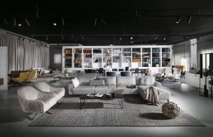 В выставочном зале площадью 800 м2 представлена разнообразная коллекция предметов мебели для жилых помещений, которые отражают последние мировые тенденции в мире дизайна мебели.