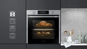 Духовой шкаф Dual Cook Flex объемом 75 литров оснащен улучшенной технологией Dual Cook, в которой благодаря автономным верхней и нижней зонам, может создаваться 8 комбинаций с разными настройками для одновременного приготовления разнообразных блюд, в том числе с использованием пара. Камеру данного духового шкафа легко разделить на две независимые зоны с разной температурой и временем приготовления пищи. Это значит, что вы можете готовить одновременно 2 разных блюда, значительно экономя время.