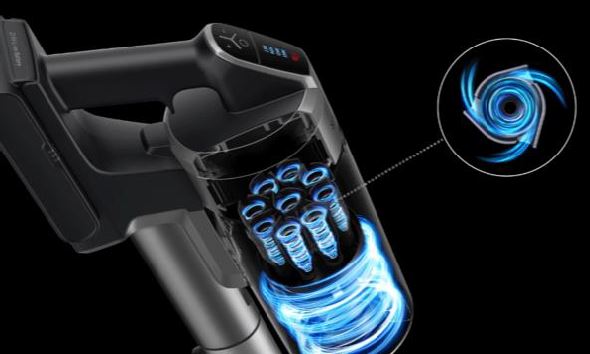 Новая серия пылесосов Samsung Jet™ оснащена мощным мотором Digital Inverter и системой Jet Cyclone. Мотор оборудован запаянной крышкой и воздушным диффузором, который оптимизирует поток воздуха и позволяет Samsung Jet™ поддерживать высокий уровень энергоэффективности, необходимый для обеспечения значительной мощности всасывания. Даже когда батарея почти разряжена, система пылесоса Jet Cyclone, включающая девять отдельных циклонных фильтров, не снижает мощности всасывания. Модели оснащены аккумулятором большого объема, который позволяет работать в течение часа! Аккумулятор можно сменить в мгновение ока одним нажатием и, в случае необходимости, работать с пылесосом два часа подряд.
