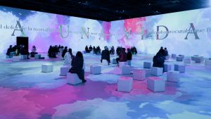 Благодаря новейшим техническим средствам разные периоды ее жизни и темы в основе картин преобразуют пространство выставки: картины «выходят за пределы» своих рамок с помощью захватывающей дух проекции и изображаются на стенах по всему периметру, создавая новую перспективу обозрения.
