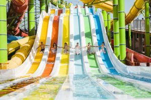 Центральный красочный комплекс горок Rainbow Slides, который был запущен прошлым летом, с четырнадцатью особенно экспериментальными спусками для серфинга, подходящий для детей от семи лет и старше, что сокращает очереди до минимума; самый большой волновой бассейн в Израиле; огромный и оригинальный пиратский корабль с шестью горками и водяными пушками, четыре рейсер-горки со специальной доской для серфинга; особо быстрая штормовая горка для детей от 12 лет; горки-камикадзе – чрезвычайно быстрые экстремальные горки для детей от 10 лет и извилистая горка с захватывающим слаломом для детей от четырех лет и, конечно, взрослых. Среди аттракционов есть потрясающие Fantasy, парный спуск по темной трассе со спецэффектами для детей от 5 лет и старше, и Crazy Koons, единственная в своем роде тюбинговая горка в Израиле – подъем, переворот и спуск – 3 раза.