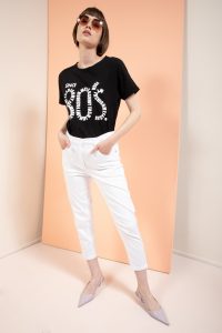 Если обычную черную футболку T-shirt с графическим принтом комбинировать с белыми брюками, получается образ молодой, энергичный и, как это ни странно, элегантный. При этом он максимально комфортный, ведь для своих моделей Crazy Line выбирает только качественные мягкие ткани, которые позволяют коже «дышать».