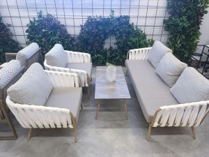 Среди разнообразия материалов, из которого создана садовая мебель Гардини: цельный алюминий с очень широкими профилями и электростатическим покрытием (устойчивость к ультрафиолетовому излучению, предотвращение отслаивания или выцветания и получение однородной прочной поверхности), цельное состаренное африканское дерево вручную обработанное мастером (максимально устойчивое к уличным условиям при минимальном уходе), роскошные и тщательно продуманные сиденья и подушки, стекло, прочные веревки, ротанг, переработанный акрил с защитой от ультрафиолета в эффектных дизайнерских решениях и разнообразии цветов и многое другое.