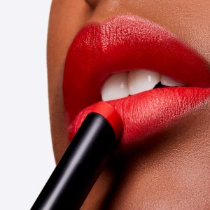 Новую помаду легко и удобно использовать благодаря скошенному краю, точно повторяющему форму губ. Не размазывается, не собирается в морщинках, не осыпается и не тускнеет до 12 часов.