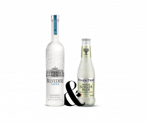 В низкий стакан, наполненный льдом, наливаем на четверть водку Belvedere и добавляем Fever-Tree Ginger Beer. Затем можно выдавить в стакан четверть свежего лайма, аккуратно перемешать, украсить долькой свежего лайма и соцветием свежей мяты – и наслаждаться!