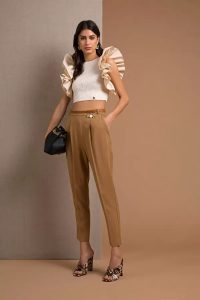 Брюки-дудочки высокой посадки универсального оттенка могут стать основой гардероба, сейчас их цена 850 шек.