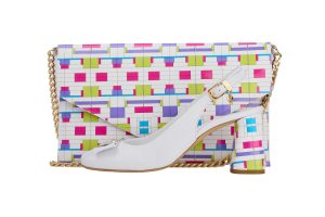 - Монохромный образ великолепно смотрится с яркими многоцветными туфлями и сумками, именно вокруг них весь look и выстраивается.