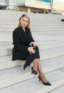– Романтическая и нежная юбка с воланами из органзы отлично дополняется белыми ботинками с тканевым верхом на грубом протекторе. Белый деловой элегантный костюм, дополненный высокими белыми кедами на рифленой подошве, сразу «звучит» иначе – появляются полутона и образ становится глубже и интереснее. Это же относится к короткому платью в блестках, которое я сочетаю с резиновыми ботильонами на прозрачной подошве: дерзость и неоднозначность образа — это то, что я люблю.