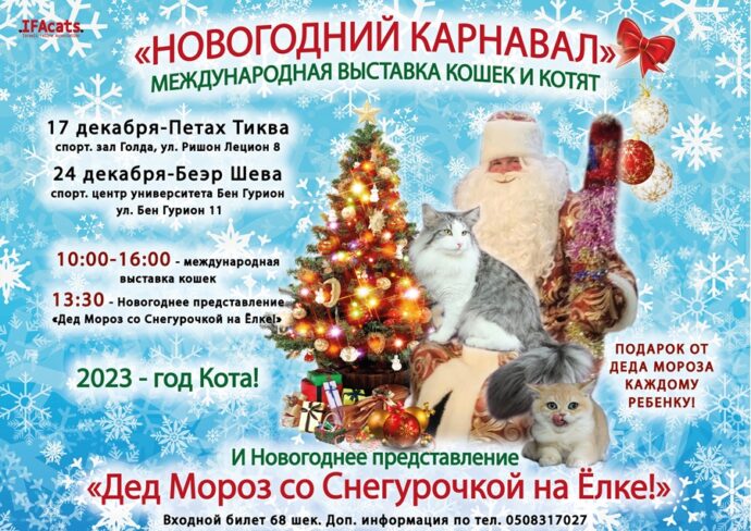 10:00-17:00 — Выставка и соревнование кошек и котят, израильских и зарубежных, судьи прилетают из разных стран