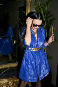 Новый год – это самая необычная ночь в году и самое подходящее время для модных экспериментов. Поэтому мой следующий образ очень неожиданный – в его основе тонкий стеганый плащ Crazy Line оттенка, который называется «королевский синий». Это потрясающий цвет, в котором невозможно остаться незамеченной.