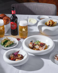 Для овощных, рыбных закусок и главного рыбного блюда знатоки советуют выбрать лагер Estrella Damm, официальное пиво Барселоны, легкое светлое пиво премиум-класса с 4,6% алкоголя. Пиво Estrella Damm является неотъемлемой частью каталонской культуры и считается “звездой Барселоны”.