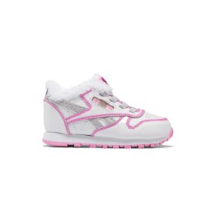 Classic Leather – с искусственным мехом и розовыми деталями как будто сделаны для лучшей подруги Пеппы – Овечки Сьюзи. На язычке изображена сама Пеппа, а на боковой части кроссовка – лейбл с совой, любимой игрушкой Овечки Сьюзи.