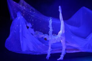 Помните: как найти кошку в черной комнате? Человеческий глаз не способен отличить черное на черном – это первый принцип, на котором основан театр черного света. Этот эффект использовали с древности, особенно в Японии и Китае, где жонглеры и кукловоды были одеты в черное. Уже в наше время трюк с черным ящиком использовали в театре (Константин Станиславский) и в кино (Жорж Мельес и французские авангардисты).