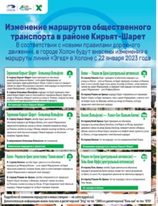 В соответствии с новыми правилами дорожного движения, в городе Холон будут внесены изменения в маршруты линий «Эгед» в Холоне с 22 января 2023 года