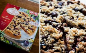 Это вообще гениальный полуфабрикат. Пироги в заморозке советуют перед употреблением разогреть в духовке в течение 30 минут. И вот через эти 30 минут у вас на столе появляется пирог не хуже, чем из модной cakery (от слов cake и bakery), и в разы дешевле. Совсем несладкий, сочный внутри, с чуть хрустящим песочным тестом по бокам. Сливовый / яблочный с орехами / творожный пирог известной немецкой пекарни Coppenrath & Wiese в заморозке (59 шек вместо 69, 90 шек/ более 1кг).