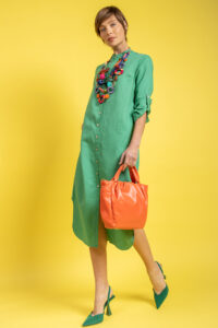 Цветовая палитра новой коллекции невероятно разнообразна: от ярких цветов, таких как зеленый, желтый, синий, фуксия и оранжевый, до мягких оттенков бежевого, розового, лавандового и ментолового, что создает бесконечные возможности для сочетания. К примеру, ментоловый прекрасно сочетается с оранжевым цветом, лавандовый с желтым, а с помощью желтого и оранжевого, вы создадите стильный, заметный и элегантный образ.