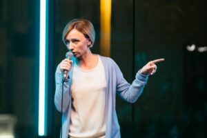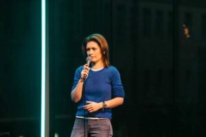 Например, Мария Маркова по профессии актриса и журналистка. До стендапа она закончила журфак МГУ и актерское отделение режиссерского факультета РАТИ-ГИТИС, снималась в сериалах, играла на сцене театра “На Страстном” и в театре имени Мейерхольда, и даже получала престижные театральные награды. В стендапе она с 2020 года, на сцене предстает в образе скромной интеллигентки с вкрадчивым голосом, шутит на любые темы, но в рамках приличия.