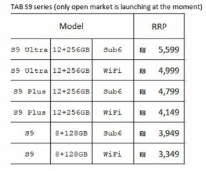 | Galaxy Tab S9 | Galaxy Tab S9+ | Galaxy Tab S9 Ultra | |||