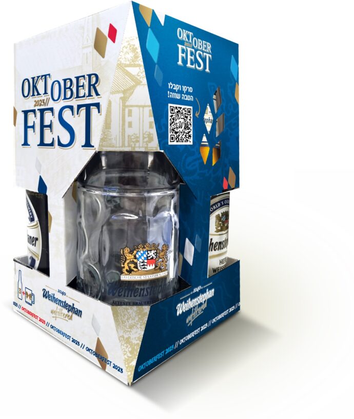 Специально к фестивалю Weihenstephan в Израиле создали праздничную упаковку – три пол-литровых бутылки и фирменная пивная кружка. За прекрасным подарочным набором стоит зайти в избранные алкогольные магазины, магазины сетей «Тив-Таам», «Стоп-Маркет» и другие.