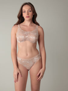 В новой коллекции представлены актуальные чувственные фасоны, такие, как балконет, который снова в тренде, или бралетт, который в последние сезоны стали носить не только, как бюстгальтер, но и как топ; дерзкие и слегка провокативные контрастные модели, со вставками в виде кружев и цветов; смелые и пикантные полупрозрачные бра с ажурными узорами и элегантной сеточкой; комфортные модели без косточек , дарящие чувство свободы; трусы с высокой посадкой, актуальные, как никогда, и сексуальные модели с низкой посадкой; уютные пижамки, в которых приятно понежится в постели.