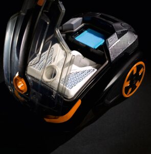 Водяной фильтр AQUA-BOX – это самый современный, эффективный и удобный аквафильтр. Для ликвидации мусора, пыли, шерсти животных, пыльцы и клещей хватит одного литра обычной воды. Входящий воздух промывается мощными струями воды при помощи уникальной технологии WET-JET. Благодаря системе подавления пыли WET-JET в пылесосе создается «эффект дождя» и пылевоздушный поток промывается водой. Редкие мельчайшие частицы, которым все же удается проскользнуть через аквафильтр, удерживаются дополнительным специальным HEPA-фильтром. Поэтому на выходе получается чистый и увлажненный воздух.