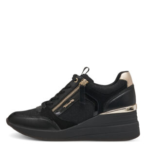 В последние сезоны и зимой 2024 особенно, сникеры на платформе, высокой или массивной подошве стали хитом сезона. Этот тренд особенно полюбился модницам, ведь такая обувь визуально удлиняет ноги, добавляет роста и комплиментарно стройнит весь силуэт. А кроме того, они еще и удивительно комфортны, так как хорошо амортизируют стопу, что снижает усталость при длительной ходьбе. Кстати, обратите внимание на сникеры немецкого бренда Tamaris, в производстве этой обуви используются современные технологии повышенной комфортности, это просто must have повседневного гардероба.