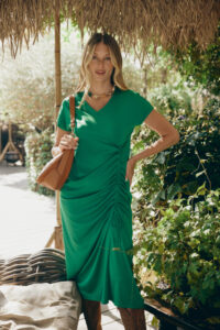 Разумеется, одним из главных цветов новогодней ночи станет зеленый, так как это год Зеленого Дракона: изумрудный, цвет молодой травы, малахитовый, фисташковый – ставьте на любой оттенок. Зеленый рекомендуется выбрать основным цветом вашего образа. Например, в коллекции Crazy Line вы можете найти изумительное и очень новогоднее платье-конверт. Скроенное из мягкой и комфортной ткани, оно не обтягивает, но подчеркивает и расставляет правильные акценты. В таком платье движения становятся мягче, а походка грациознее, к тому же такой фасон всегда выглядит эффектно и торжественно.