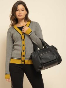 Сомневаетесь, с чем носить желтый? Стилисты рекомендуют комбинировать его с серым, получится великолепный вариант для офиса, строгий и одновременно женственный. С синим выйдет самое естественное природное сочетание, как желтое солнце на синем небе. Прекрасно дополнит его и зеленый, например, изумрудного оттенка низ и желтая блуза. В сочетании с коричневым получится комфортный и спокойный образ. А вот если вы хотите яркий, контрастный, дерзкий аутфит, ставьте на черное. Эта комбинация сигнализирует о вашей экстравагантности и уверенности в себе. Сразу ясно, что вы за словом в карман не полезете и в обиду себя не дадите. Впрочем, это сочетание можно разбавить каким-то третьим цветом, например, белым или серым, как это представленно в образе с укороченным кардиганом, созданном модельерами Crazy Line.