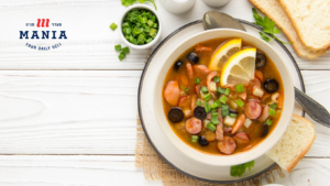 А если из горячих супов вам больше по душе солянка, то подойдут скидки на продукты нашей собственной фабрики: колбаски Сырокопченые к пиву/Салями еврейская – 9,90 ш /100 гр*, колбаса Голан/Германи– 8,90 ш/100 гр, колбаски Кабанос – 4,90 ш/100 гр*, сосиски Франкфуртер – 2,90 ш/100 гр*