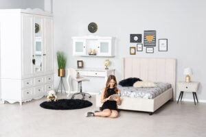 В любом из филиалов или на сайте сети вы сможете купить все, что необходимо для детской или подростковой комнаты, – от кровати, письменного стола и шкафа до трюмо, текстиля и пуфов.