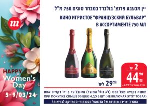 Вино игристое “Французский бульвар” в ассортименте 750 мл – 44,90 ш за 2 бутылки (вместо 29,90 шек/бут)**