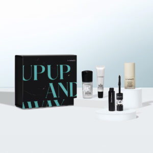 Up Up and Away – пакет для приятного полета: увлажняющий спрей для фиксации макияжа, тушь для ресниц, гибридная увлажняющая сыворотка для улучшения текстуры кожи, кондиционер для губ.