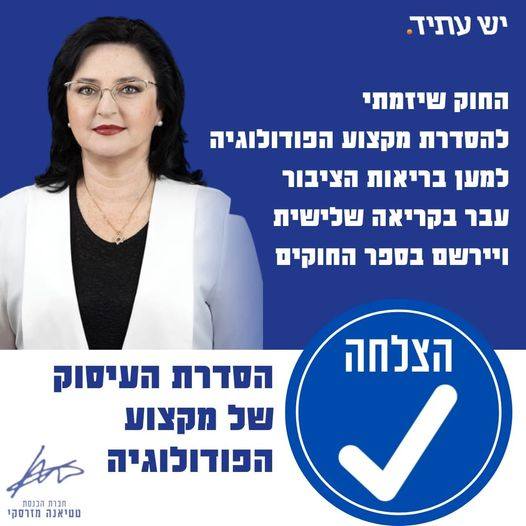 С тех пор как я вошла в Кнессет, я работаю над развитием системы здравоохранения в Израиле. Регулирование различных медицинских профессий является частью долгосрочного видения, которое я буду продолжать продвигать в Кнессете и дальше.