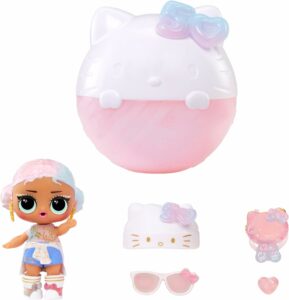Это новая куколка ЛОЛ Сюрприз Мисс Перли. Ограниченная серия LOL Surprise Loves Hello Kitty Tots. LOL Surprise заключила коллаборационное соглашение со знаменитой Hello Kitty, чтобы отпраздновать ее 50-летие и представить вам куклы Miss Pearly и Crystal Cutie. А также очаровательную одежду и аксессуары на тему Hello Kitty, и все это в совершенно новом шарике LOL Surprise в форме Hello Kitty. Распакуйте семь ярких и детализированных сюрпризов, которые соответствуют празднованию 50-летия Hello Kitty.