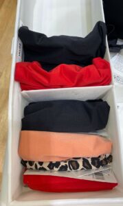 Трусы я рекомендую хранить сложенными вертикально. Этот метод позволит вам сразу видеть все пары и легко найти нужные.