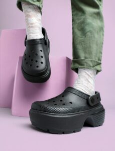 Массивные сабо на платформе Crocs Stomp Clog модные девушки сочетают с длинными свободными или короткими, по фигуре, платьями и юбками, шортами, брюками – скинни или струящимися и широкими, джинсами всех моделей. Любой одежде эта модель кроксов придаст ультрамодный городской шик.