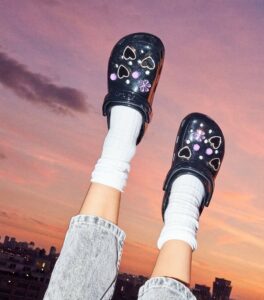 А лаковые и блестящие Crocs Classic High Shine Clog на платформе – отличный вариант для безумной вечеринки, во время которой вы сможете без устали танцевать до самого утра. Украсьте кроксы яркими шармами – и они станут акцентом вечернего образа.