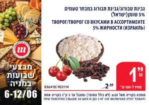 Шавуот — это один из важнейших еврейских праздников: время семейных встреч, радости и благодарностей. Одной из главных традиций Шавуота является употребление молочных продуктов, поэтому мы в Мааданей Мания приготовили для вас скидки на широкий выбор молочных продуктов для традиционного праздника. О тех, кто хочет выйти за рамки традиций, мы тоже подготовили приятные цены на мясо и морепродукты.