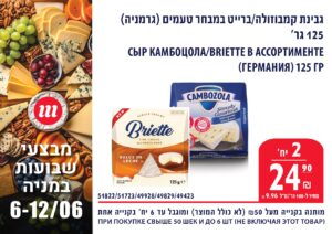 Сыр Камбоцола и Briette – 24.90 шек/ 2 уп.