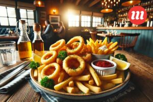 Сытные “Фиш энд чипс” с кольцами кальмаров
