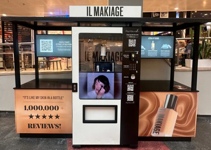 В последние дни многие посетители «Дизенгоф-центра» в Тель-Авиве обращают внимание на необычный торговый аппарат с логотипом IL MAKIAGE. Этот международный косметический бренд, известный не только высоким качеством продукции, но и инновационными разработками, впервые установил в Израиле роботизированный стенд для подбора и продажи средств для ухода за кожей и макияжа.