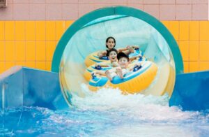 Кроме того, аквапарк предлагает большой и роскошный спа-комплекс, включающий 5 бассейнов-джакузи разной температуры, турецкую баню, сухую и влажную сауны, террасу для загара и отдыха.