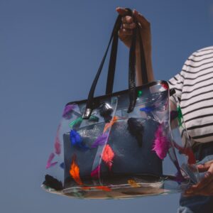 Еще один хит 2024 года – двойные сумки-трапеции с прозрачной верхней частью. Это настоящий must-have для тех, кто любит необычные и оригинальные аксессуары. Такие модели играют на контрасте материалов: внутренняя часть выполнена из плотного материала, а внешняя – из прозрачного пластика или силикона. Эта многослойность добавляет образу футуристичности.