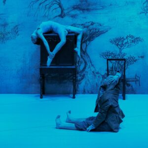 Еще во время “коронных локдаунов” Инбаль поставила видео-данс «Снаружи» по одноименному рассказу Эдгара Керета – абсолютно прекрасному (это относится и к рассказу, и к видео-дансу https://www.youtube.com/watch?v=ElRXcuBnojw). В «Гостиной» много перекличек с этим видео-дансом, созданном по заказу посольства Израиля в Японии и при участии японского актера, сотрудничество с которым осуществлялось через по видео. Главную партию в «Снаружи» исполняла Моран Миллер, много лет сотрудничающая с Инбаль Пинто, танцующая также и в «Гостиной», где в некоторых фрагментах-дуэтах к ней присоединяется Итамар Сарусси – израильский танцор и хореограф, 15 лет проработавший в Голландии и три года назад вернувшийся в Израиль.