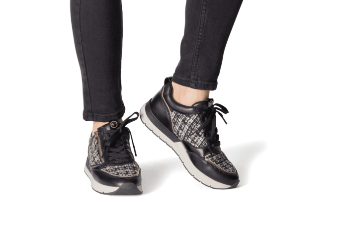 Анималистические принты снова актуальны. Tamaris предлагает модели, где анималистические принты сочетаются с другими текстурами, создавая модный и сбалансированный дизайн. Такие сникеры — идеальный выбор для тех, кто хочет сделать яркое модное заявление, но не готов к излишествам. Анималистические вставки можно носить с нейтральными вещами, позволяя обуви оставаться главным акцентом в наряде. Сочетайте их с классическими джинсами или даже с офисными брюками, чтобы добавить немного игривости и смелости в свой ежедневный стиль.