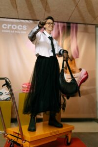 – Обувь WeShoes вдохновляет меня на творчество, – говорит Диана. – Стоит мне зайти в их магазин, и я просто вижу те сумасшедшие луки, которые можно создать с этой обувью. Например, кроксы – всегда разные, отчаянно модные, броских цветов и текстур, а украшения-шармы позволяют тебе каждый день превращать свои кроксы в новую обувь разных стилей.
