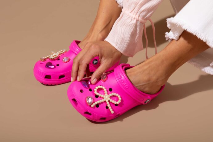 Самые узнаваемые на полках WeShoes – разноцветные сабо, слайды, сникерсы и сапожки от Crocs.