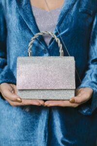 Стилист Татьяна Акопова идеально обыграла глубокий оттенок морской волны, подчеркнув его серебристыми аксессуарами, которые стали финальным штрихом: туфлями с эффектом металлик, миниатюрной блестящей сумочкой от Crazy Line и изысканными серьгами с кристаллами.