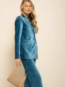 Велюровый брючный костюм цвета морской волны из коллекции Crazy Line – это одновременно роскошь и комфорт. Глубокий насыщенный оттенок подчёркивает благородство ткани, а свободный, но утончённый крой добавляет изысканности. Костюм идеально подойдёт для ужина в ресторане, встречи с друзьями или даже романтического вечера. Добавьте крупные серьги или сумку с золотистыми деталями и ваш наряд будет говорить сам за себя.